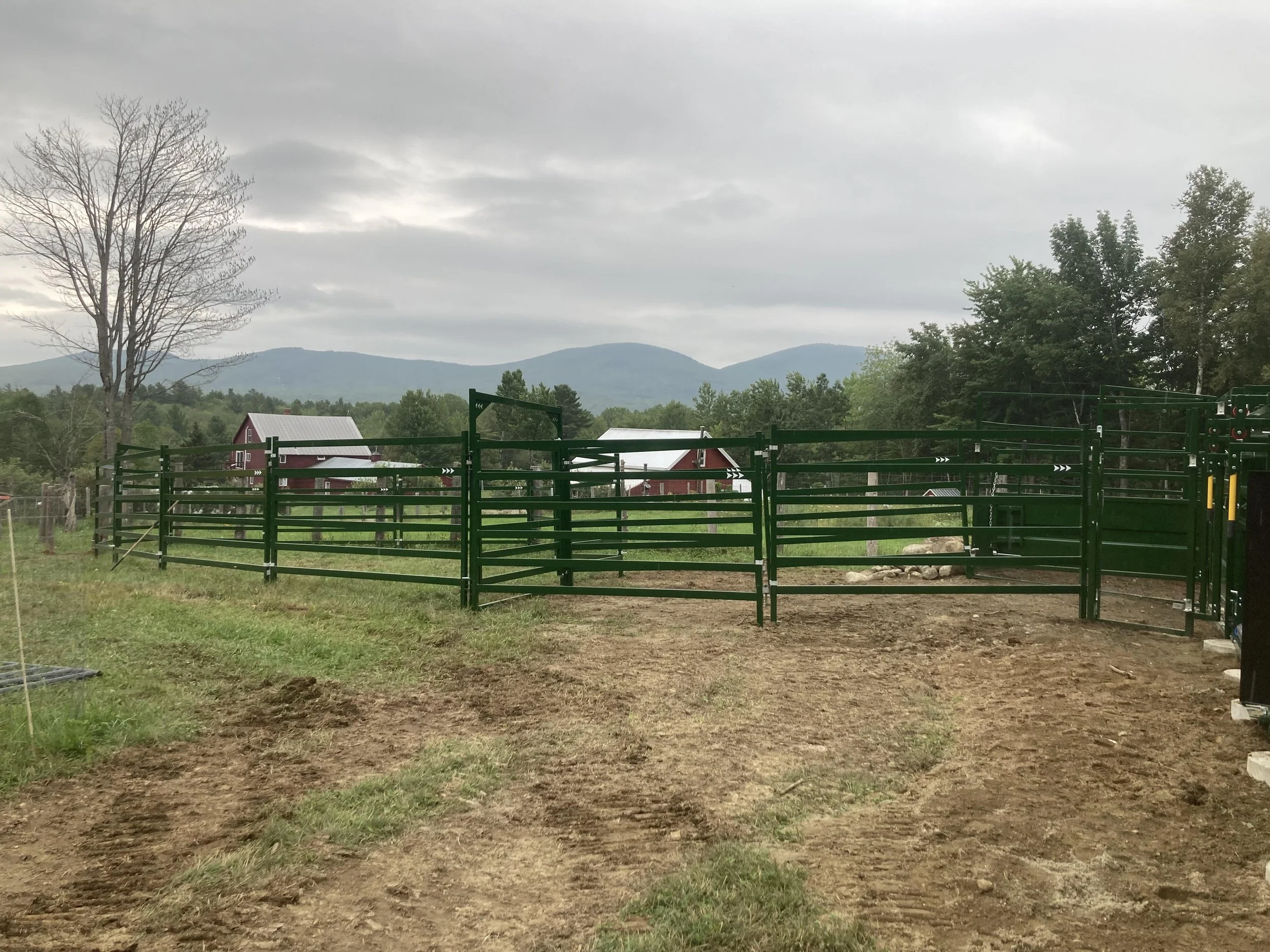Full Armor Farm added the 7400 manual chute with vet cage, Q-Catch, 8’ Budflow tub- single 90 degree alley exit cattle handling system.